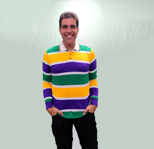 Mardi Gras Thick Stripe Rugby Adult Long Sleeve (S-XXXL)