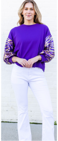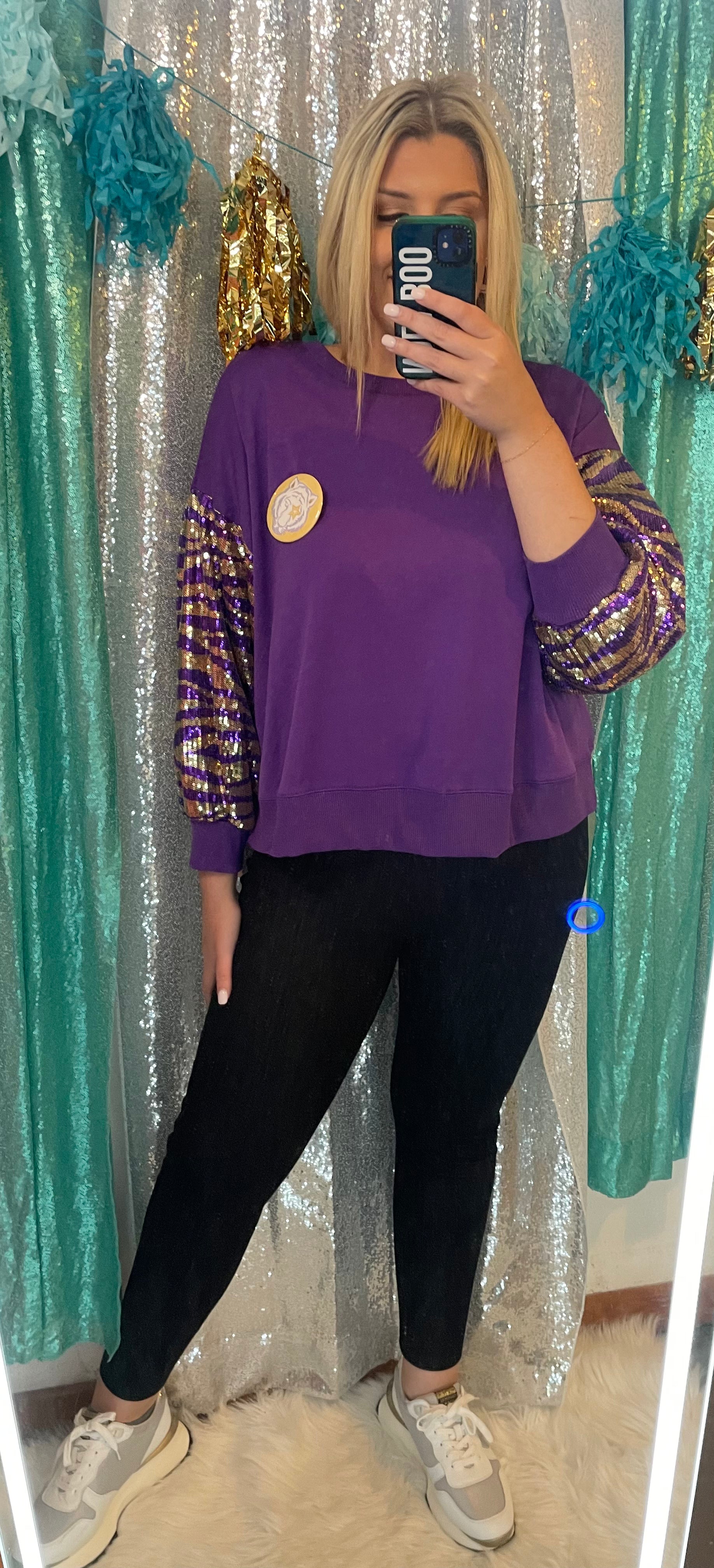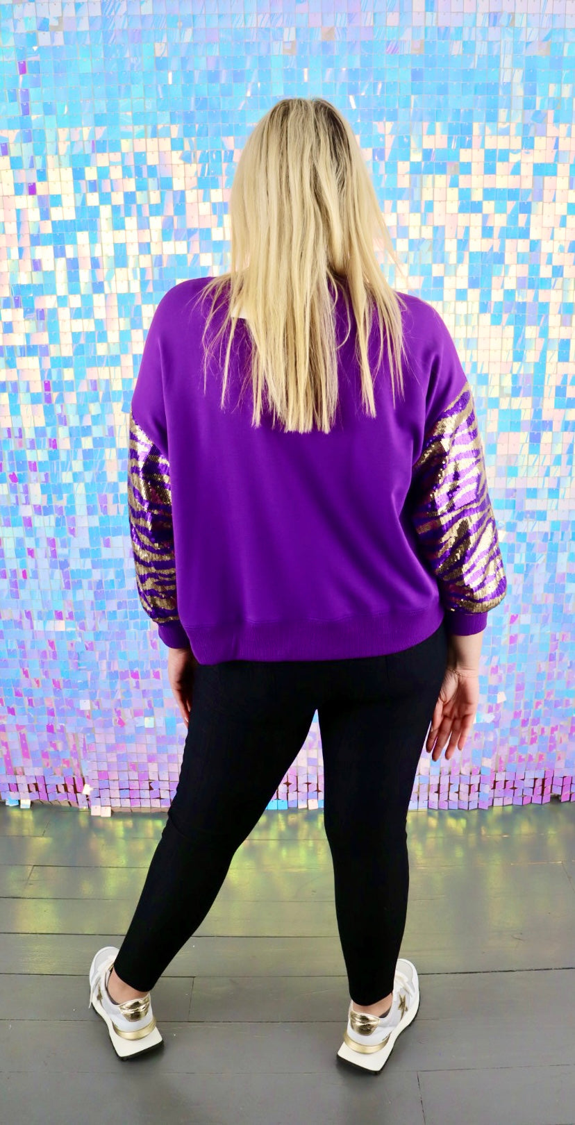 Millie Sequin Tiger StripeSweatshirt in Purple and Gold (S-XXL)