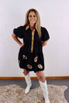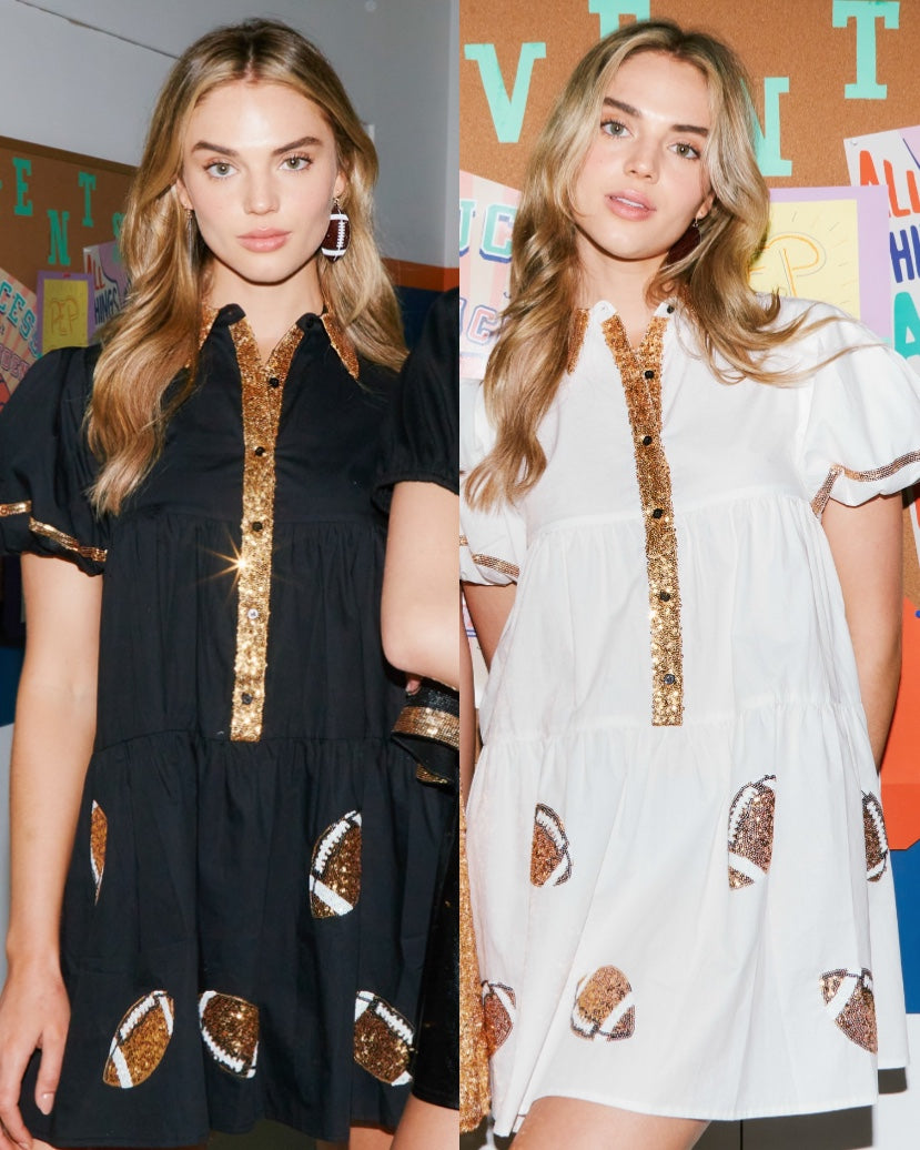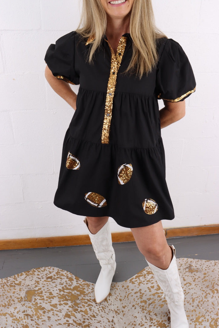 Poplin Game Day Sequin Gold Footballs Shirt Dress