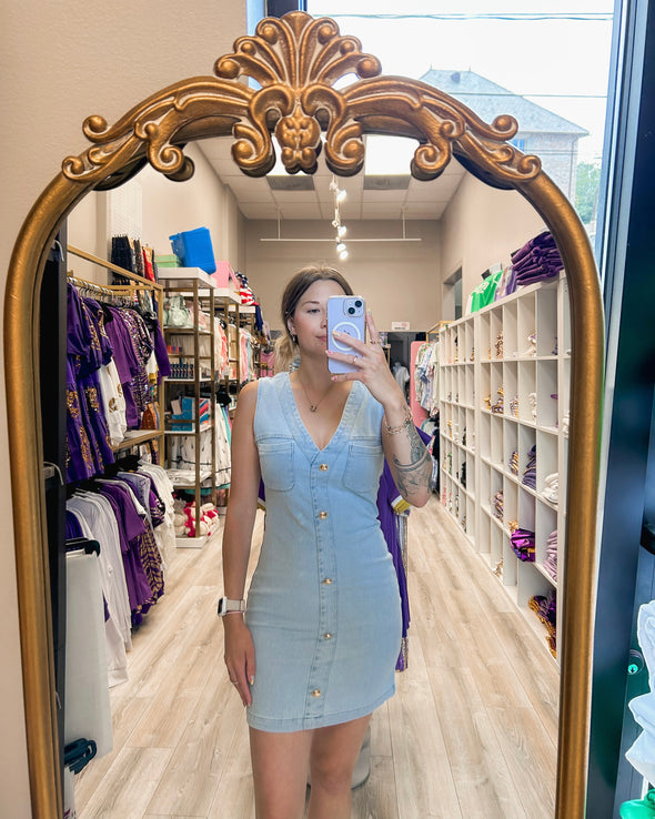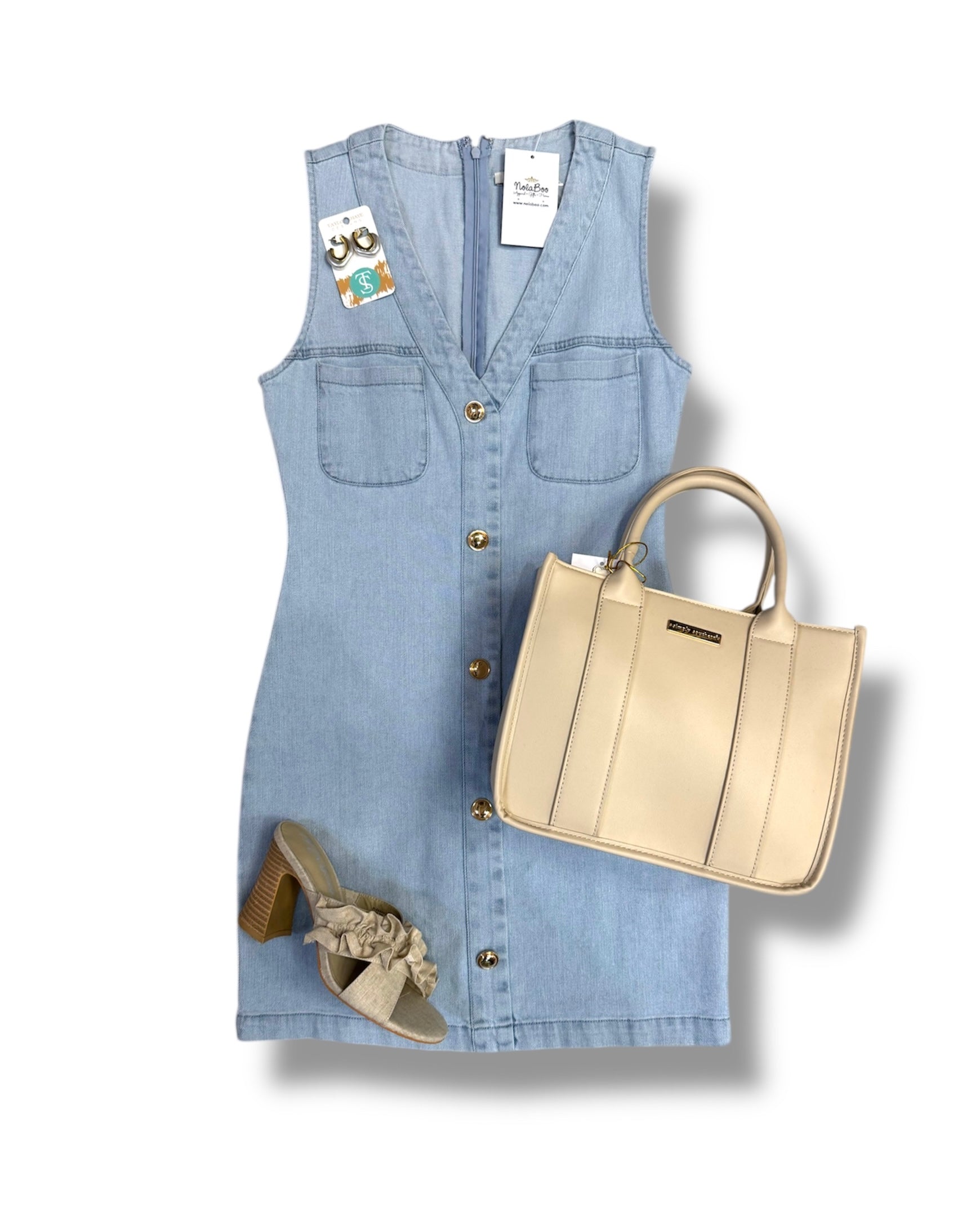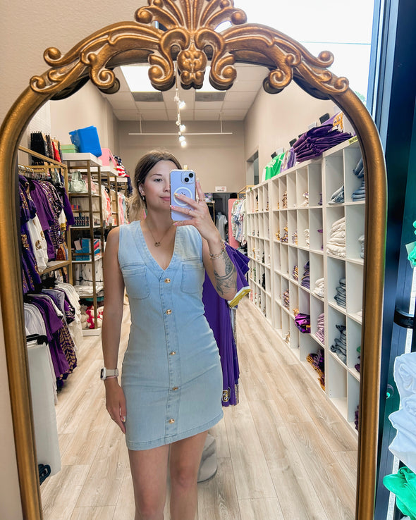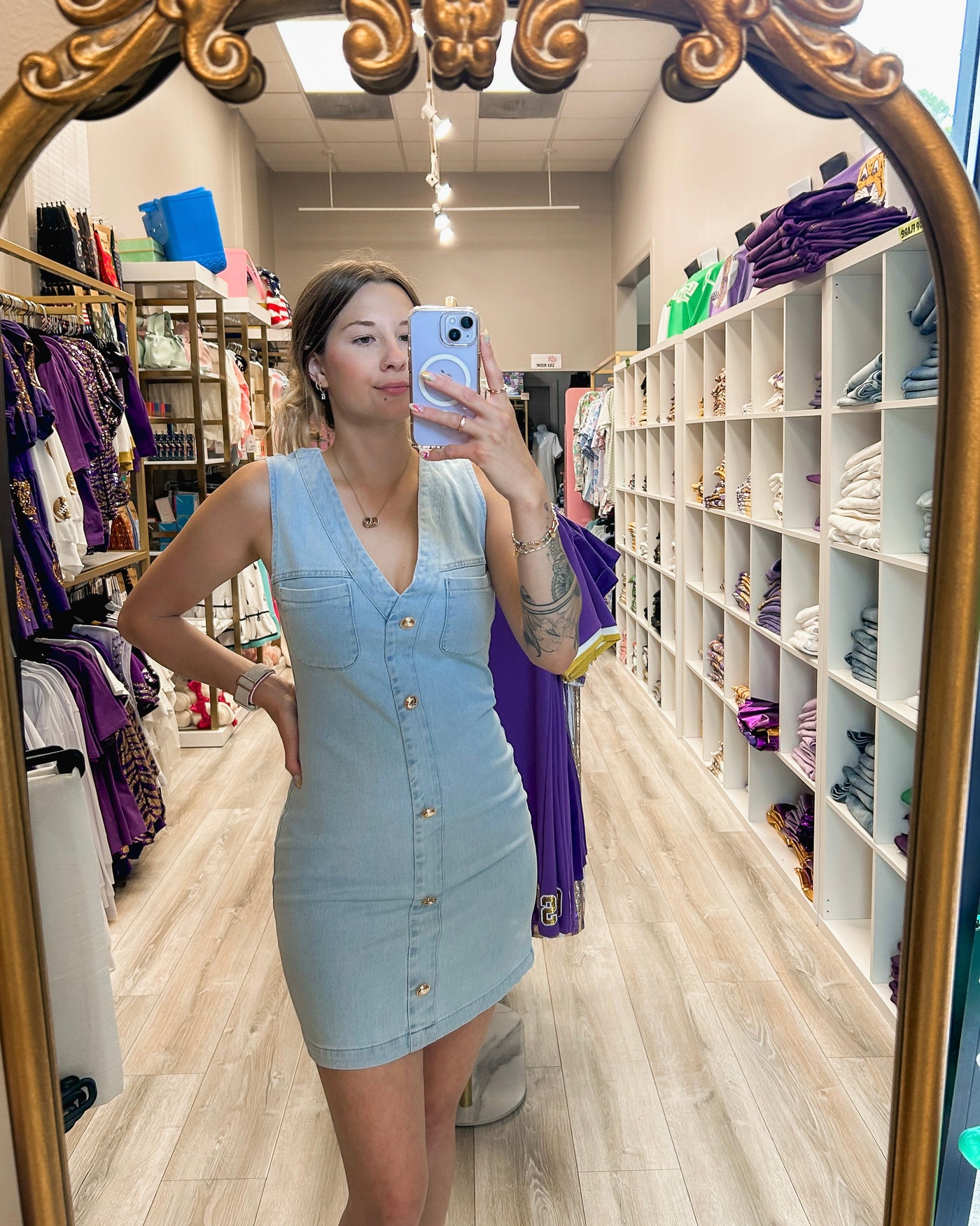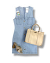 Sleeveless Denim Mini Dress With Vintage Buttons
