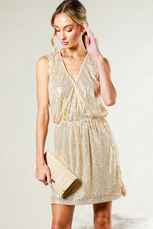 Sleeveless Sequin Mini Dress In Black Or Gold