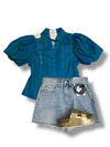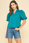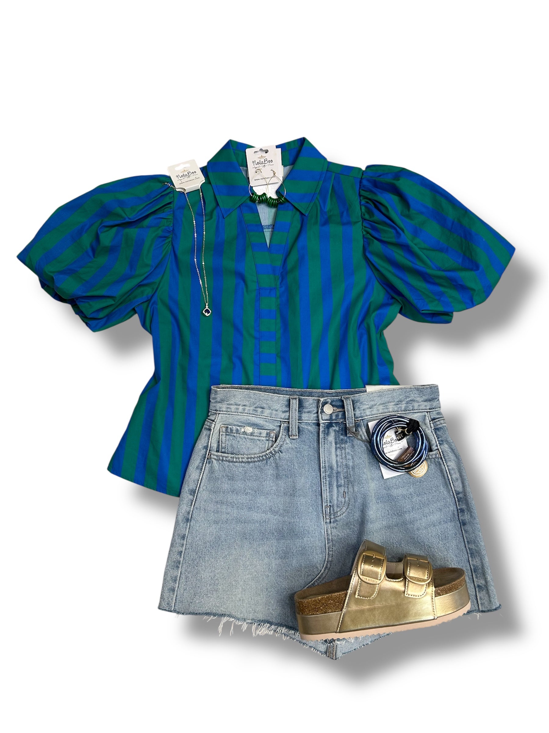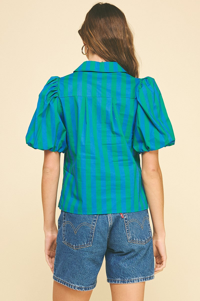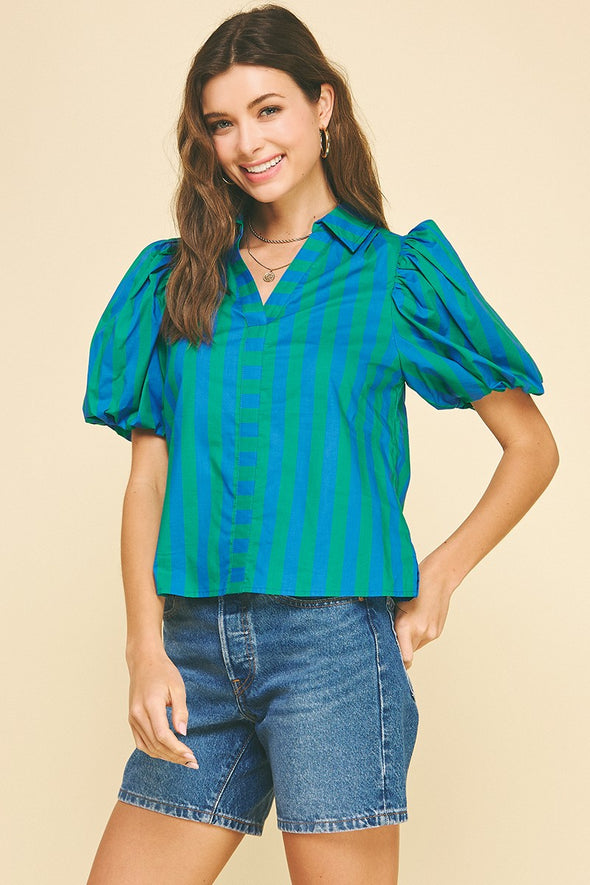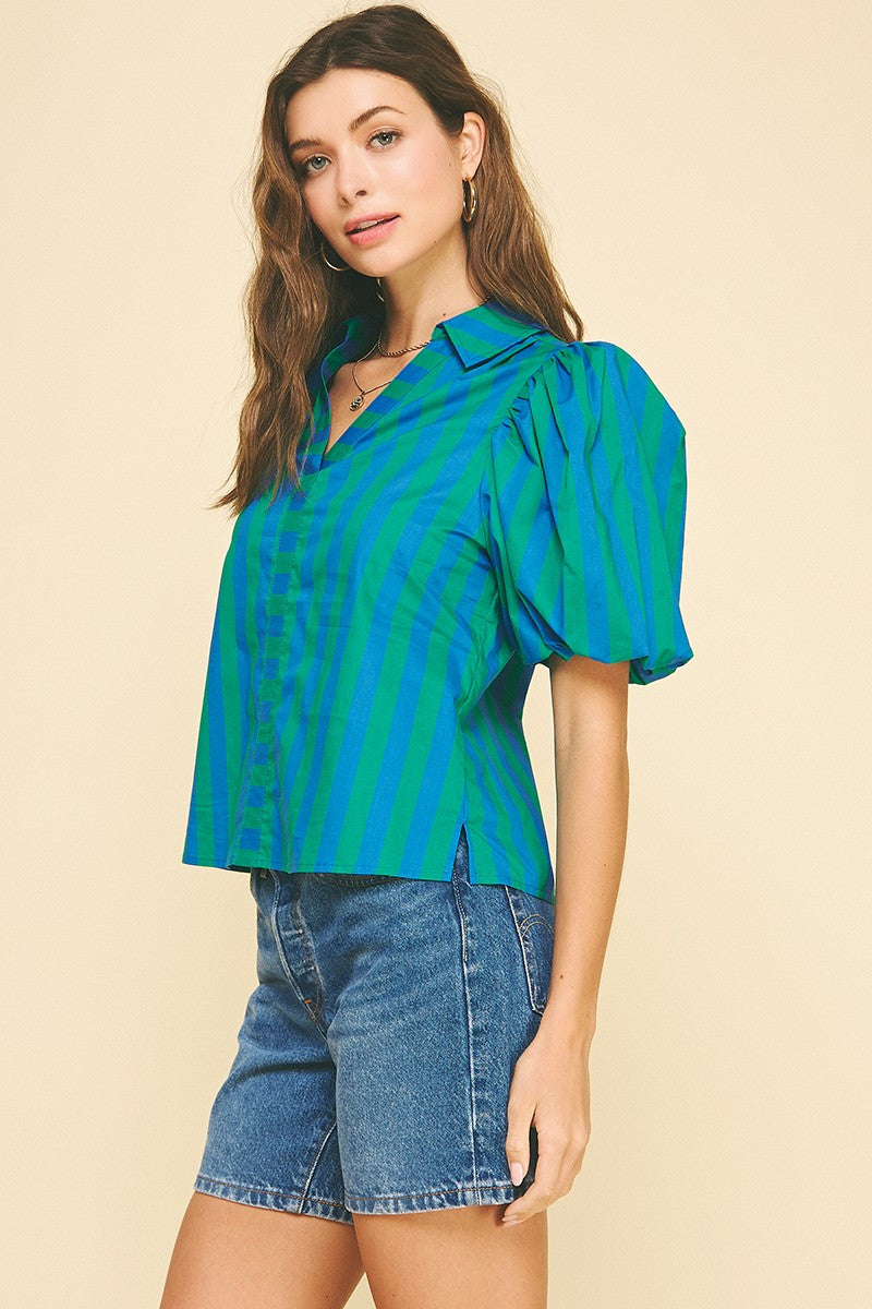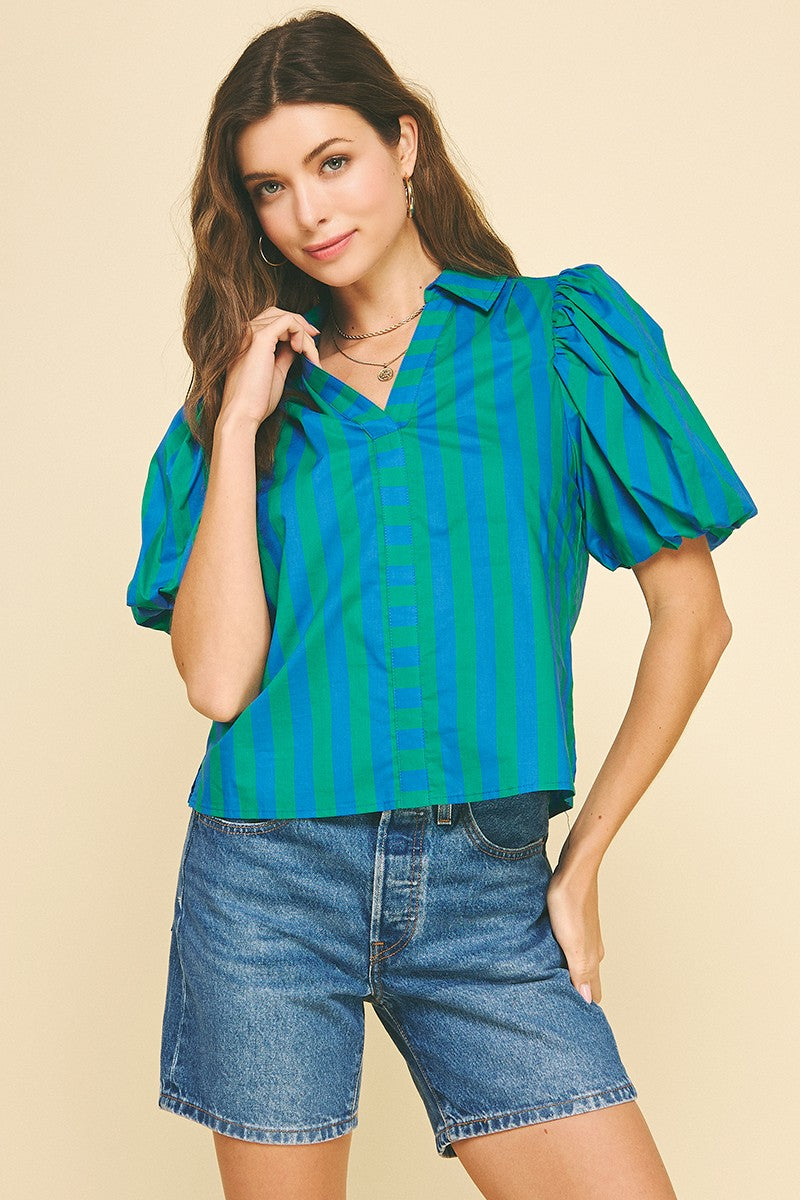 Striped Balloon Sleeve Blouse Top